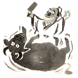 むかし、包丁という名料理人がいて、王の御前で一頭の牛をさばくことになりました。包丁は、牛の肩に手をかけ、足の位置を定めたかと思うと、みるみる肉が骨から離れ、あざやかな刀さばきで、踊りをおどっているような動作をしているうちに、なんの苦もなく解体を終えたのでした。