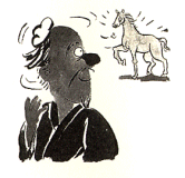 秦の穆公は、自分の部下で馬の鑑定の名人である伯楽を大いに尊重していたのですが、彼も老齢となったため、秘訣を子供に伝えておくように命じました。ところが伯楽は、「私の子供は凡人でその素質はないと思います。馬を外見からみるだけなら、形や筋骨などで分かるのですが、千里の馬という名馬となれば、外見上の顔・姿・格好からでは判別できないのです」として、その能力を備えた人物として九方皐という人を紹介しました。穆公は、喜んで、彼に名馬を堆薦するよう依頼したところ牝の黄色の馬を指定してきました。早速それを取りにやらせると案に相異してその馬は牡の黒毛の馬でした。公は怒って伯楽を詰問すると「馬を観ず、天機を観る」と返事したとのことです。はたして、この馬は千里の名馬だったと言います。